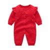 The O-neck collar adds a classic touch to the outfit, while the full sleeves provide extra warmth for cooler autumn days. With its solid color design, this romper is simple yet charming, making it a versatile piece that pairs well with various accessories.
