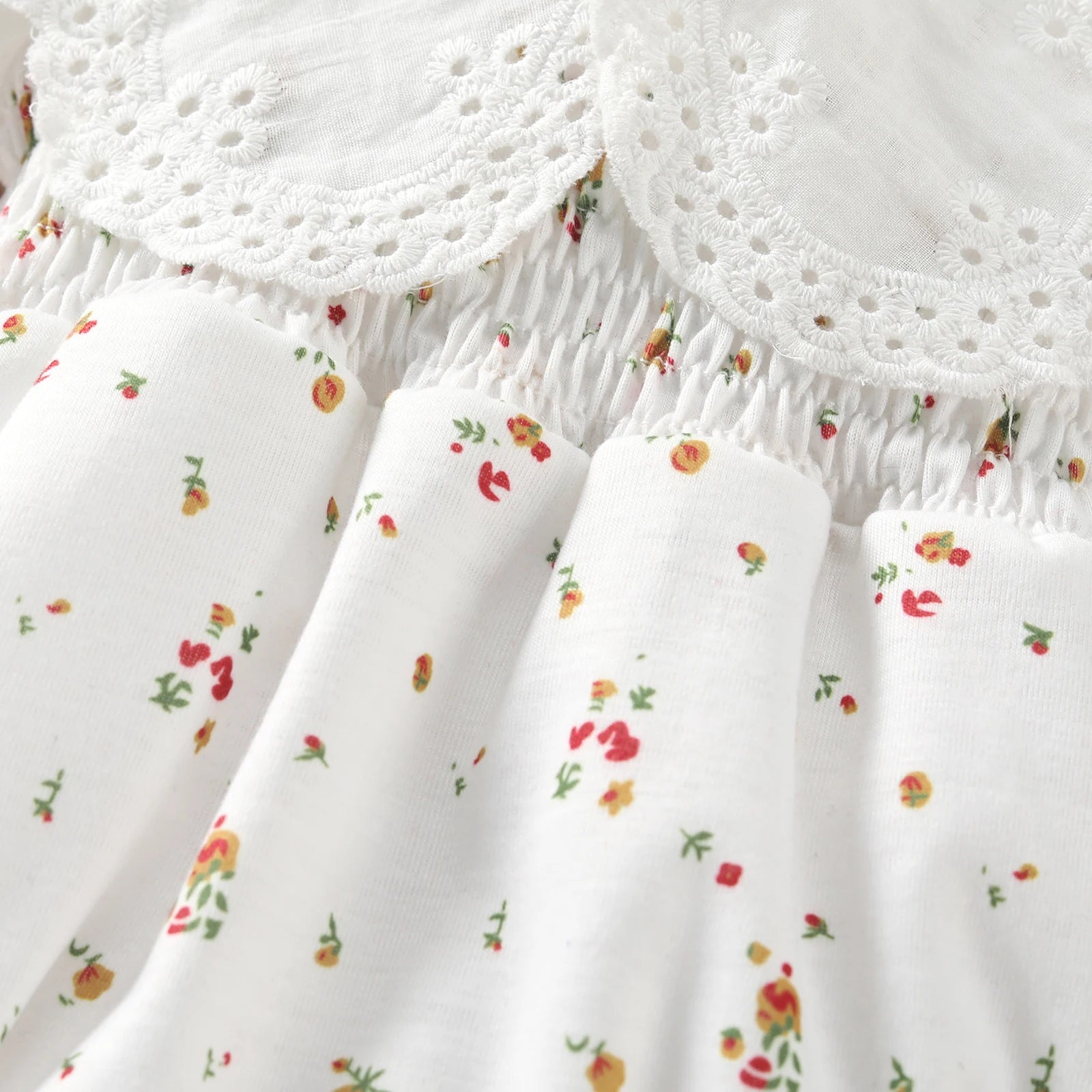 This charming baby girls' romper is a perfect blend of style and comfort, making it an ideal choice for your little one during summer. With its playful flower print and cute doll collar, it's sure to make her the center of attention.