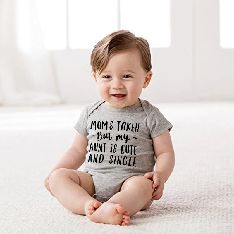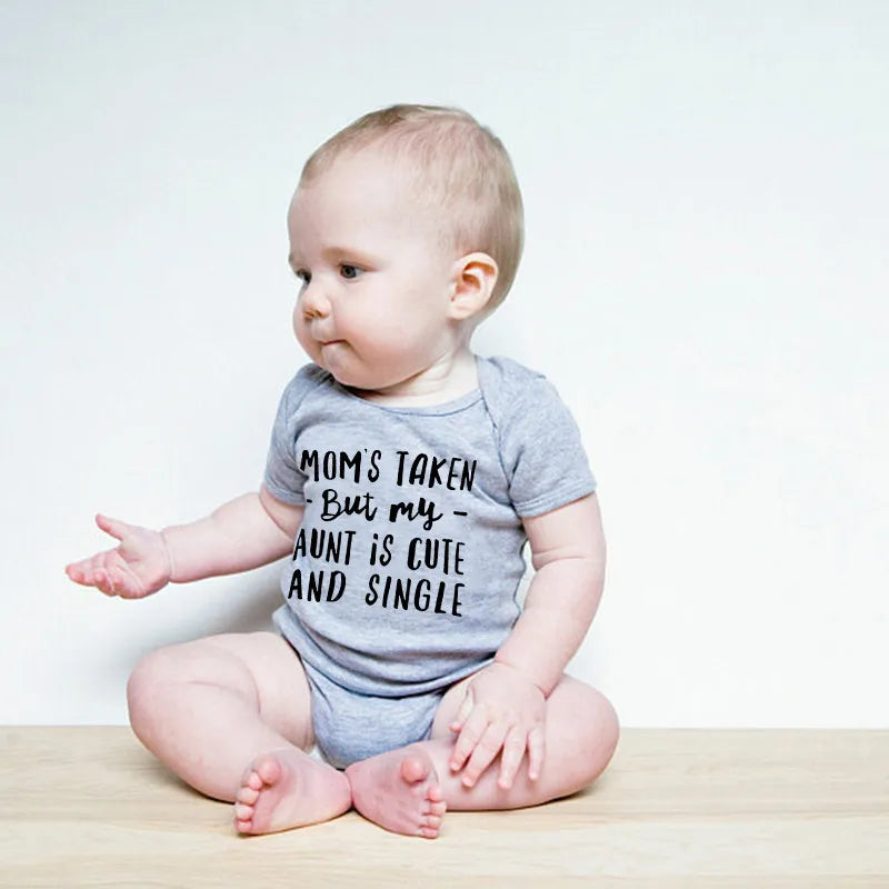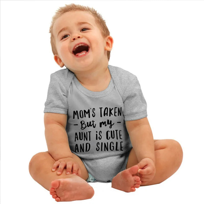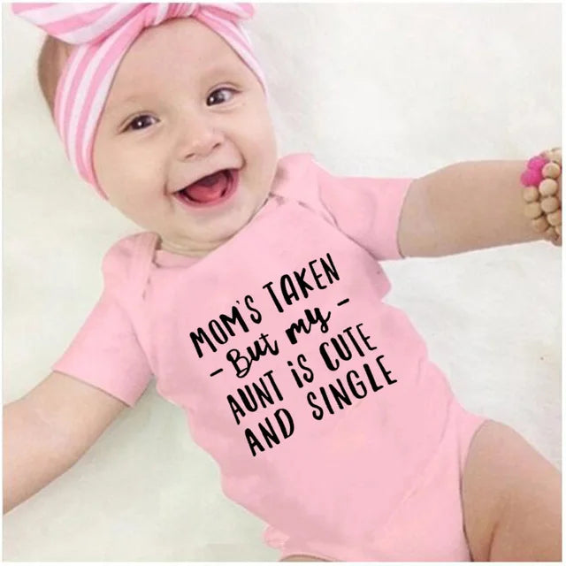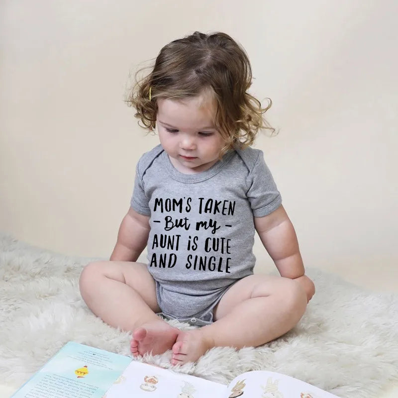 Design: Fun letter print with the phrase "Mom's Taken, But My Aunt Is Cute and Single"